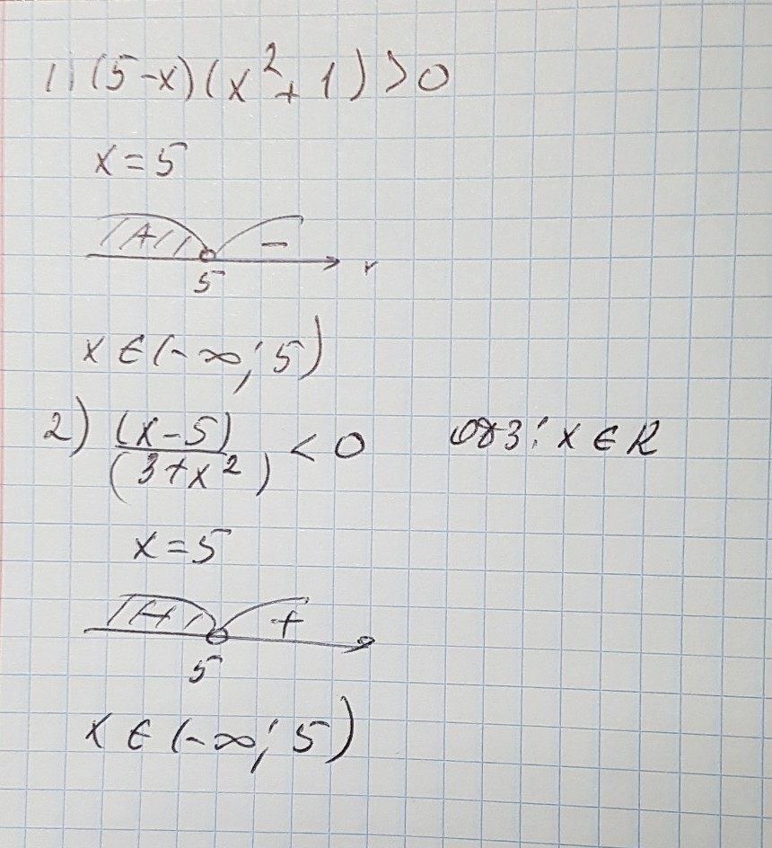 2. (3 + x²) — всегда > 0 ⇒ x - 5 < 0, x < 5. Ответ: (-∞; 5)