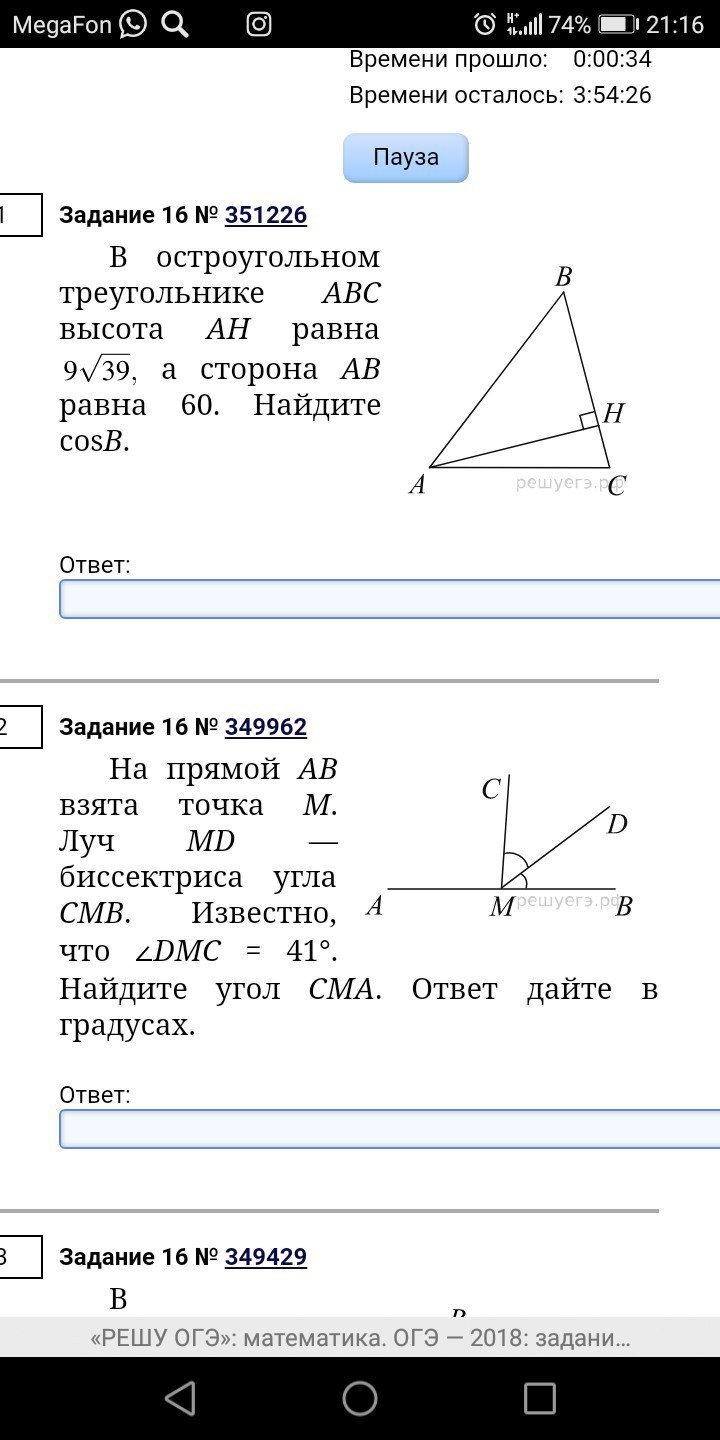 Чтобы найти косинус нужно в корне 3600-3159= в корне 441=21