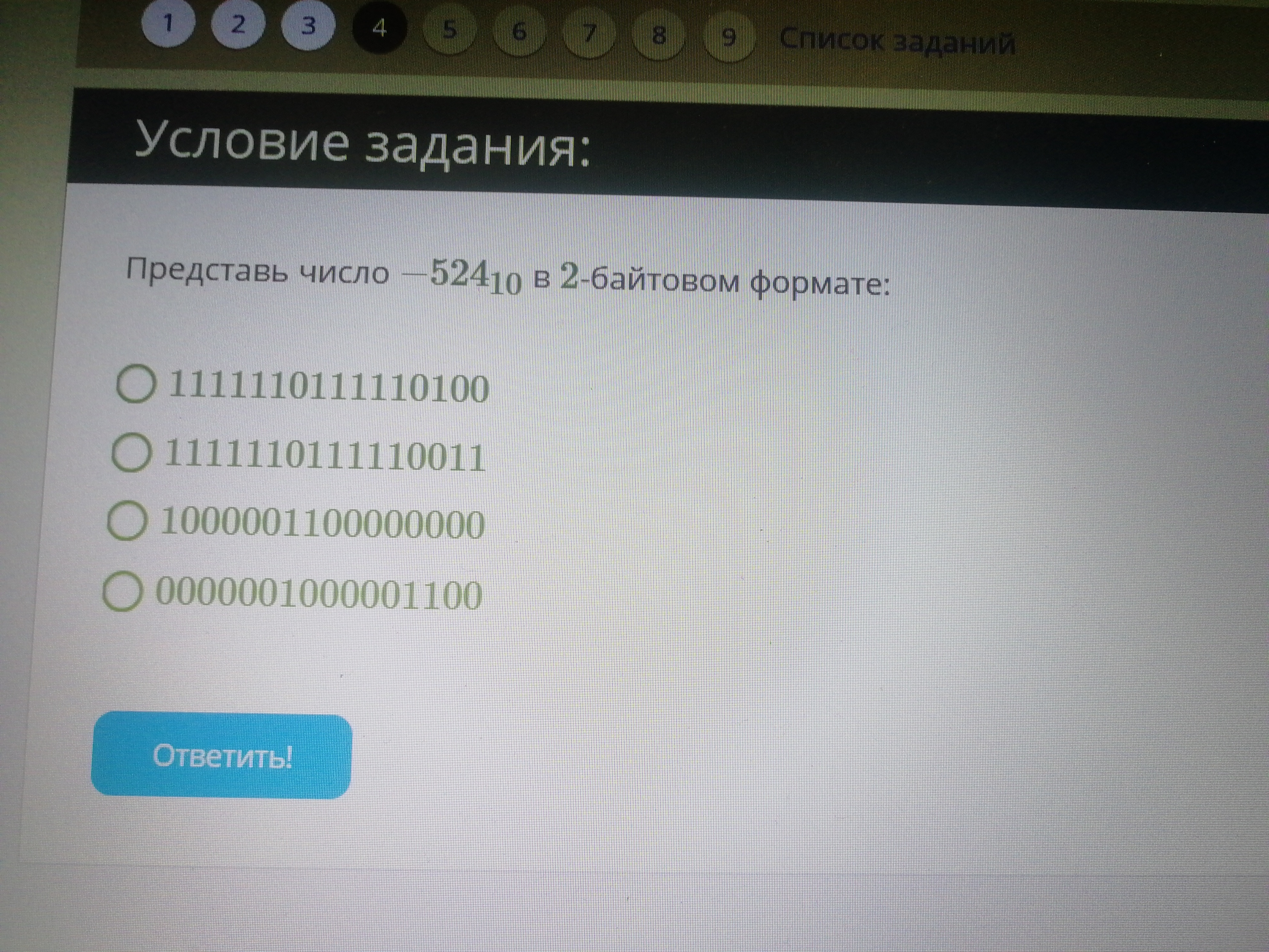 Раз там -524, как верно отметили в комментах, то правильный вариант первый: 1111 1101 1111 0100
