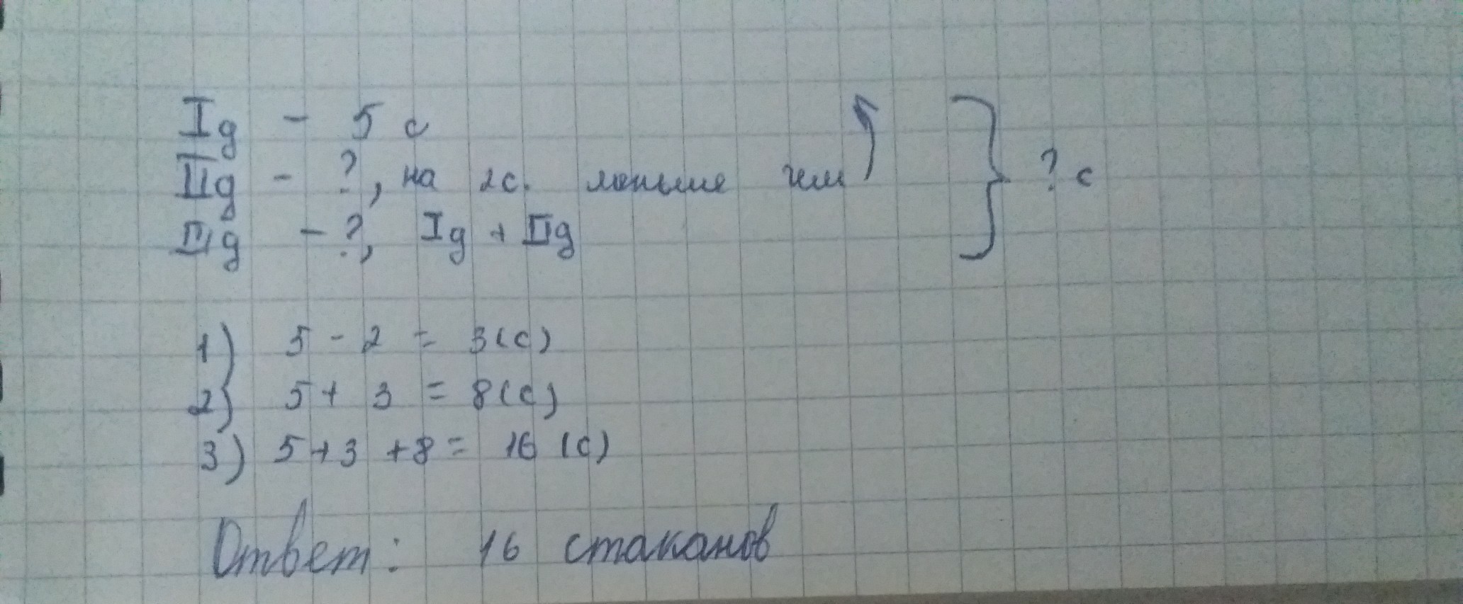 3)5 + 3 + 8 = 16 (стаканов всего съели)