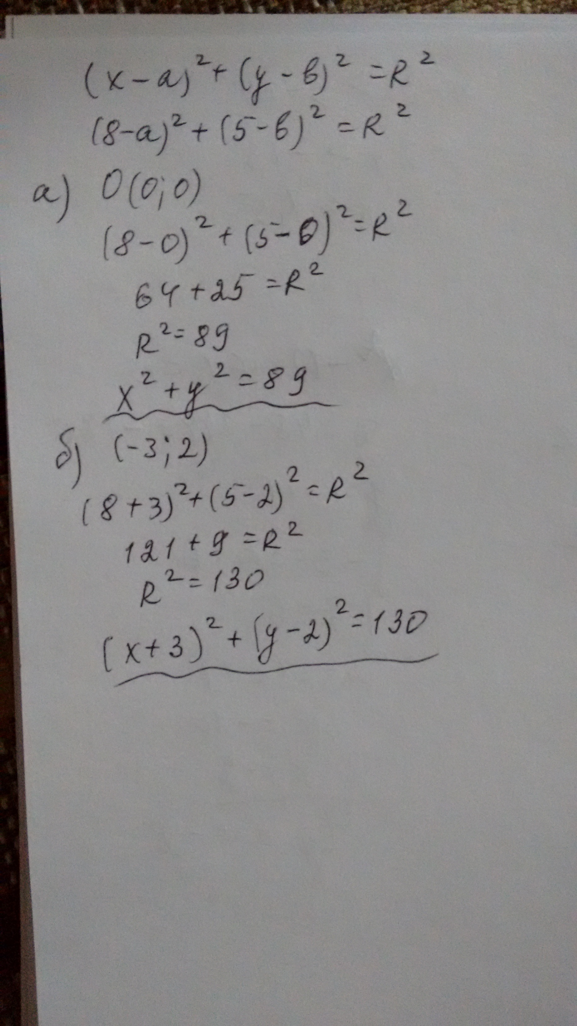 Допоможїть бодьласка) Скласти рівняння кола, яке проходить через точку (8;5) і має центр