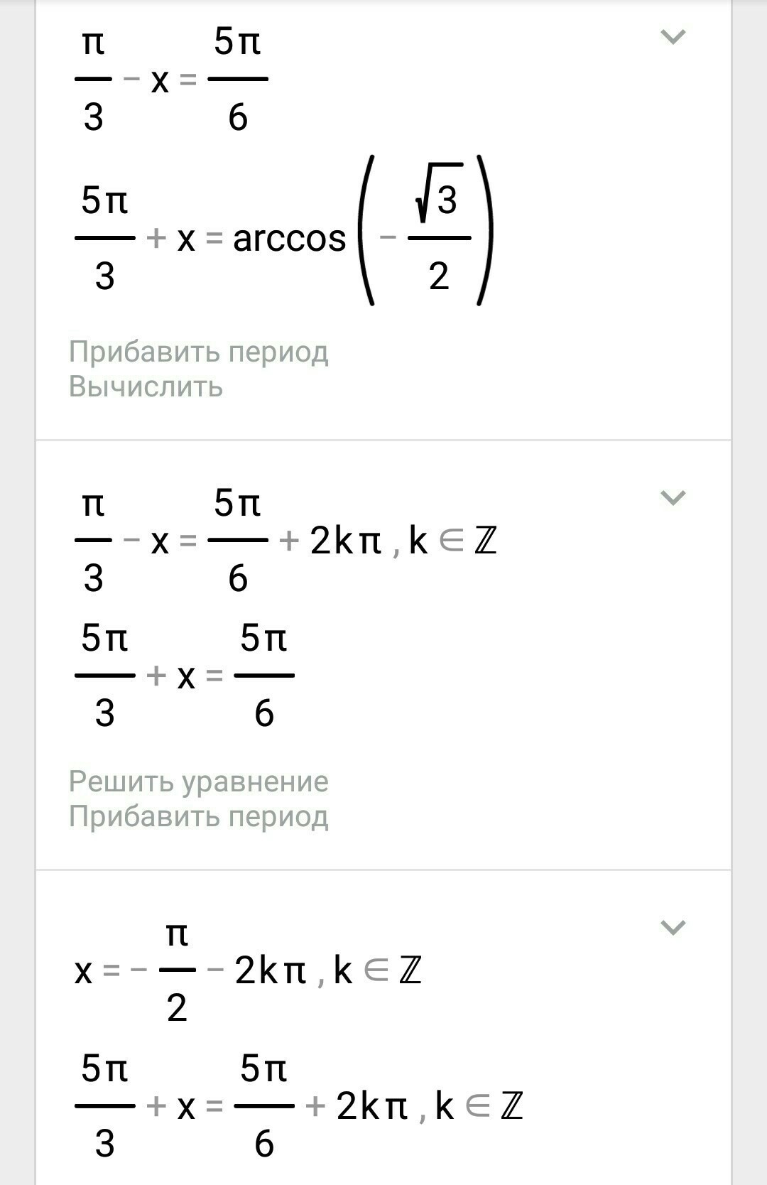 x = π + 2*π*k; x = -π/3 + 2*π*k