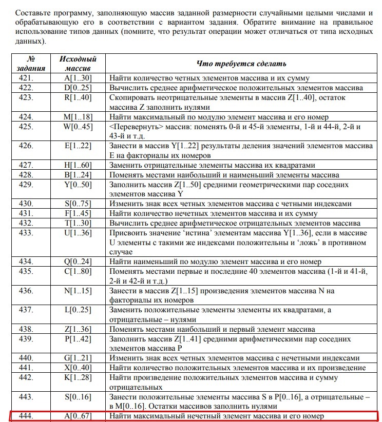 writeln ('Максимальный нечётный элемент ',m,' и его номер ',n)