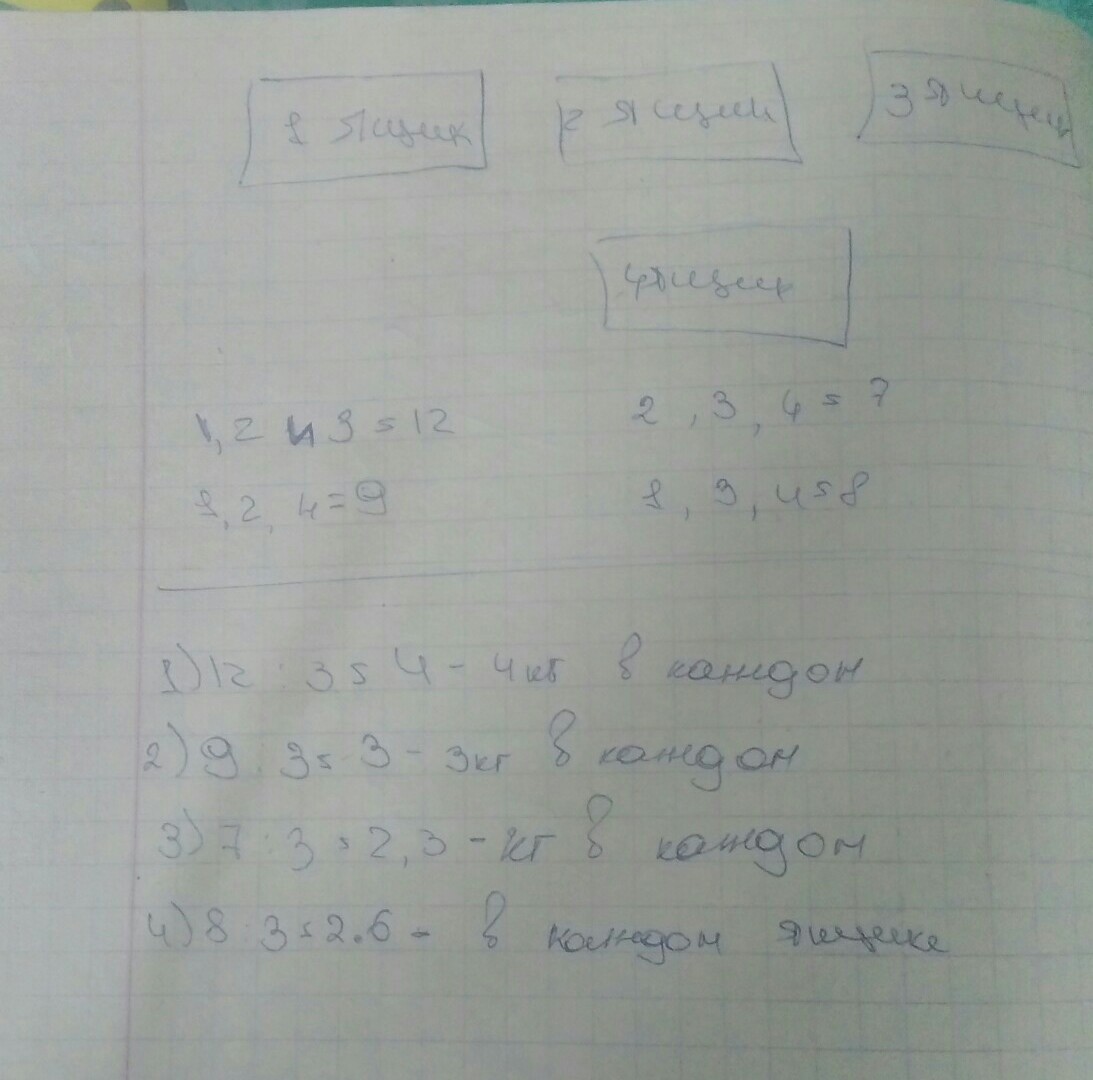 я не уверена,но если там все элементарно,то так,ибо в каждом сколько-то лука,но прям точно узнать мы не можем,в первом всего 12 и он разделен на три ящика,значит мы это делим и получаем,сколько в одном ящике,соответственно, так в каждом ящике который предоставлен нам по условию