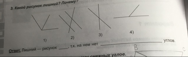 Лишний рисунок 1) ,т.к. в нём нет смежных углов