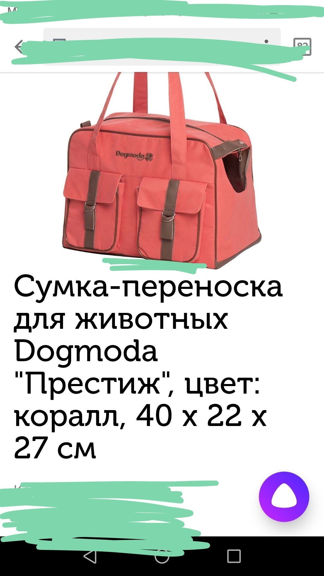 Имеется сумка переноска доя собаки. 400 мм ° 220 мм °270 мм.