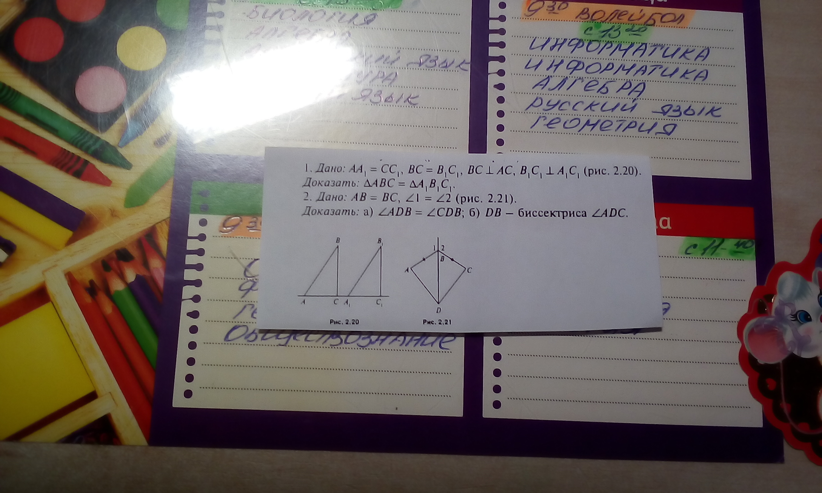 1) т.к. aa1=cc1, bc=b1c1, bc⊥ac и b1c1⊥a1c1 => по 1 признаку Δabc=Δa1b1c1