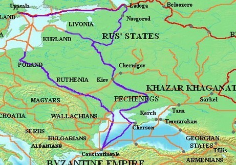 Він проходив з півночі Русі, тобто Новгорода, далі по Дніпру, Чорному морю і до Константинополя.