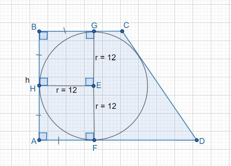 Дано: ABCD - прямоугольная трапеция, r = 12 (радиус вписанной окружности).