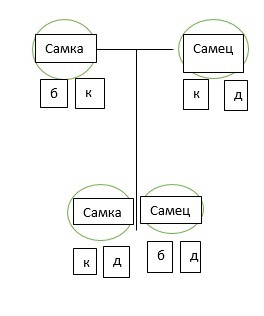 Решение: произошло расщепление 1:1 потомства, которые унаследовали от отца одно, а у самки другое. Если мы посмотрим на данную схему, тогда становится понятно: