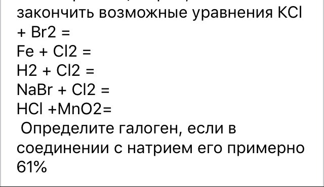 4) 4HCl + MnO2 = MnCl2 + Cl2 + 2H2O