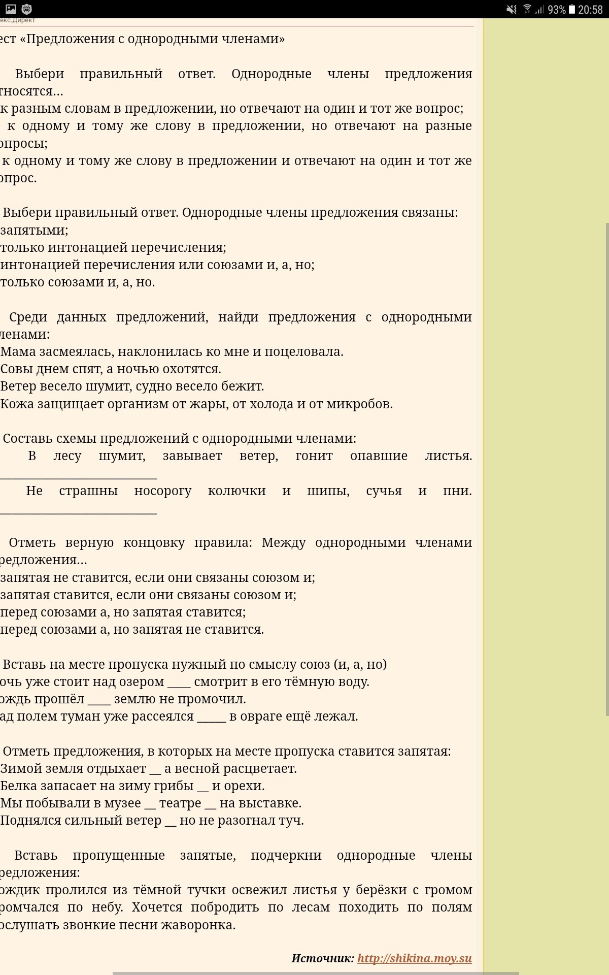 Среди данных предложений, найди предложение с однородными членами.