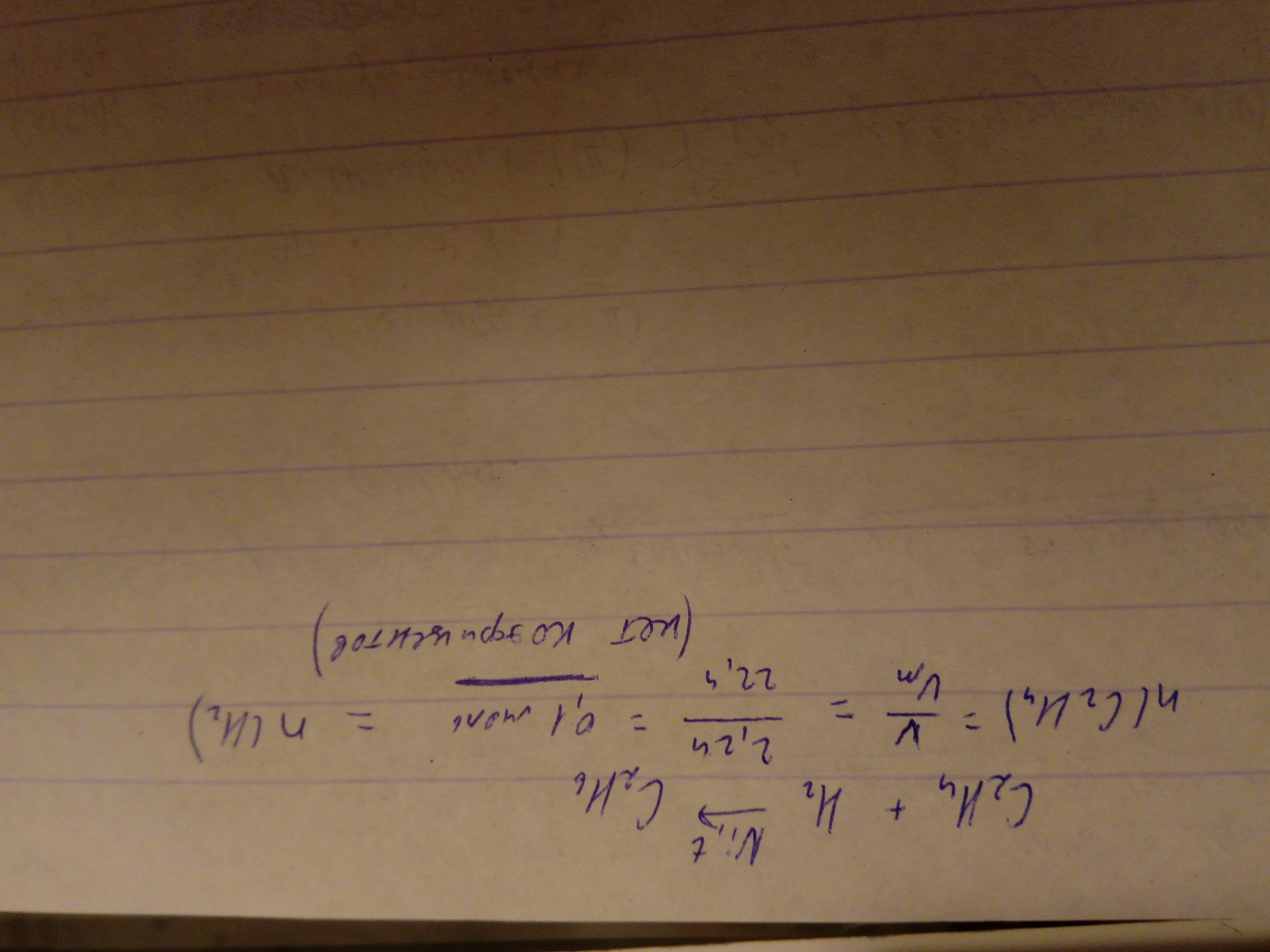 Какое количество вещества водорода потребуется для превращения 2.24 л этилена в этан? СРОЧНО плиз