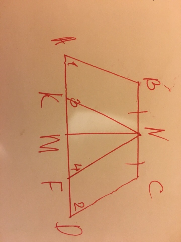 3) B ΔKNF: ∠3-∠4=90° => ∠N=90° и ΔKNF - прямоугольный, NM - медиана.