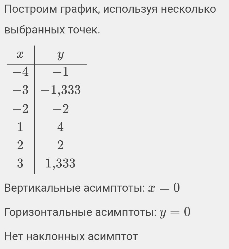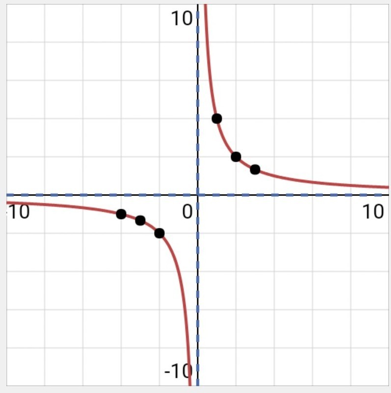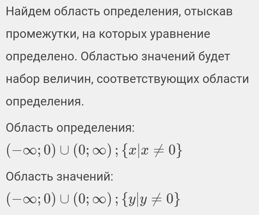 Область значений: (−∞;0)∪(0;∞);{y|y≠0}