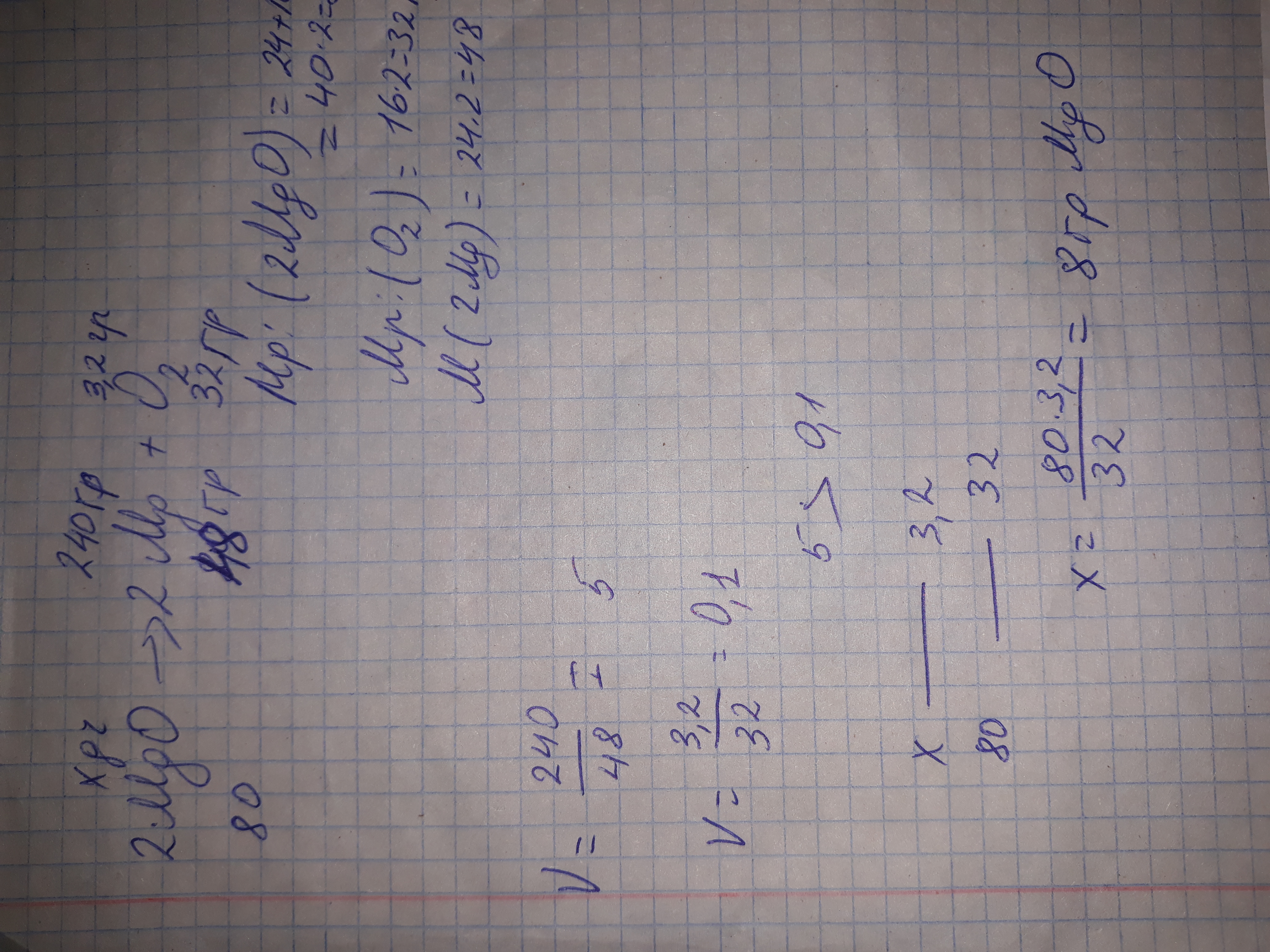 1.Сколько граммов оксида магния образуется при сгорании 240 г магния в 3,2 кислорода?