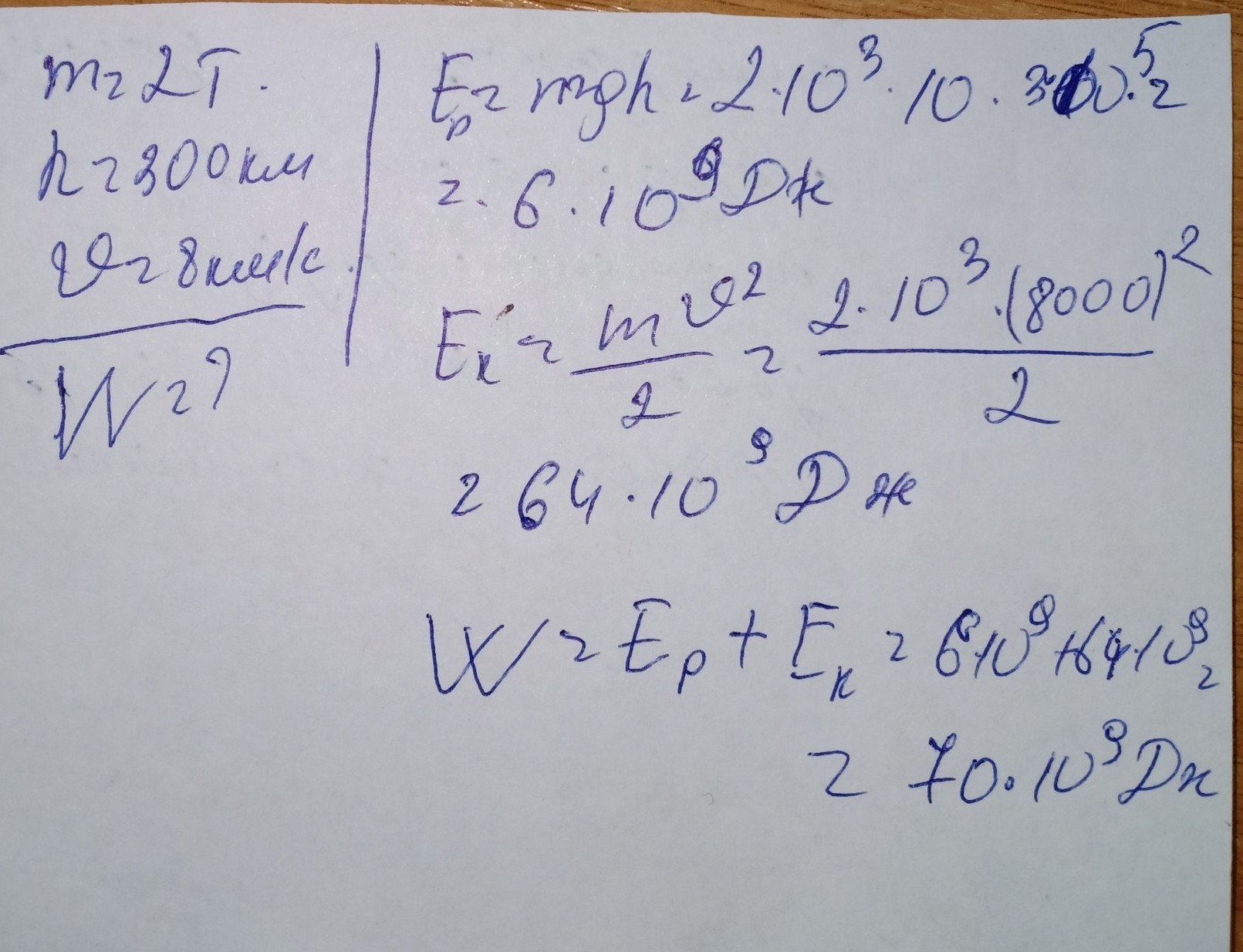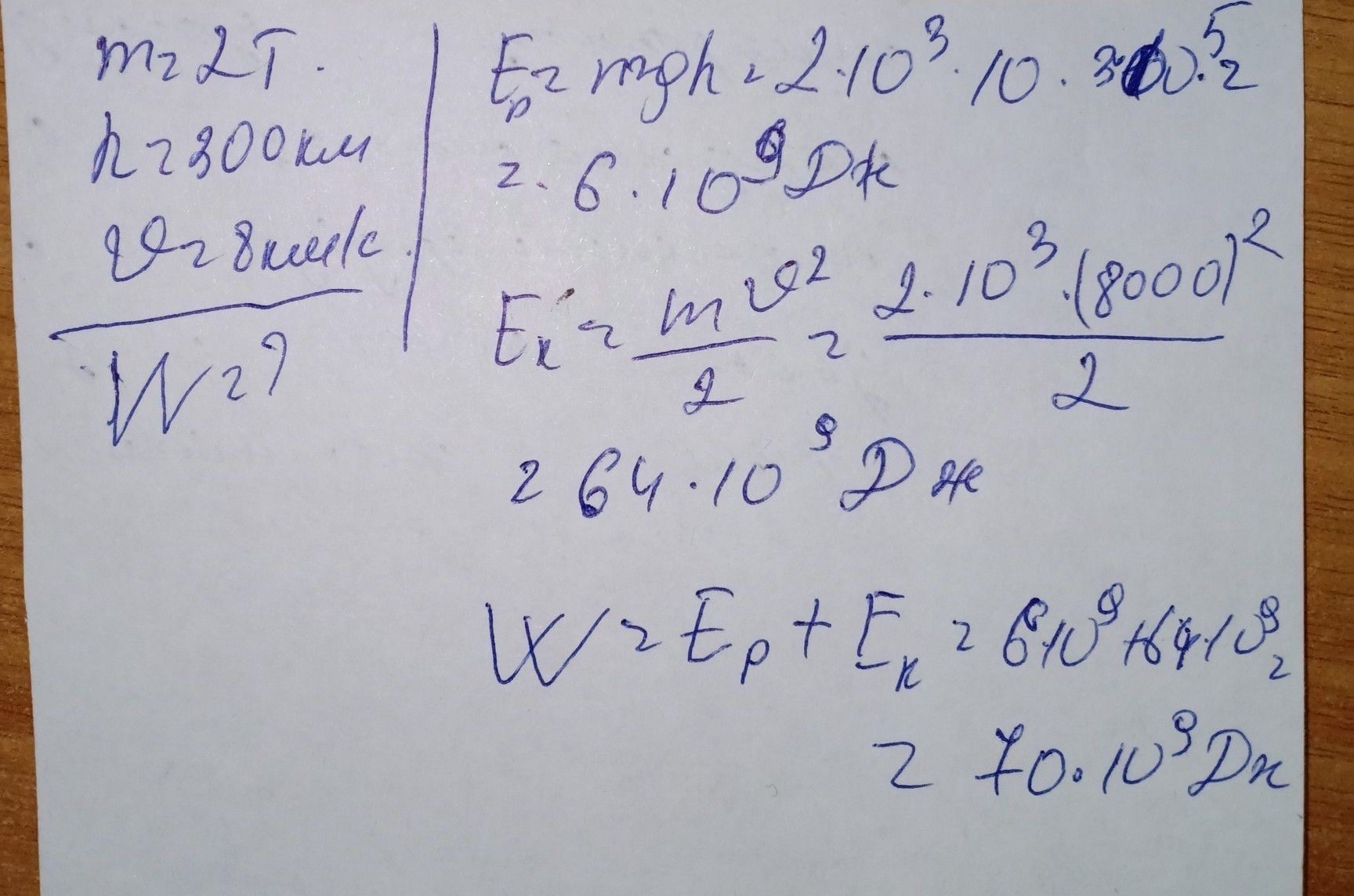 W=Ek+Ep=mV2/2+mgh=6*10^9+64*10^9=70*10^9Дж