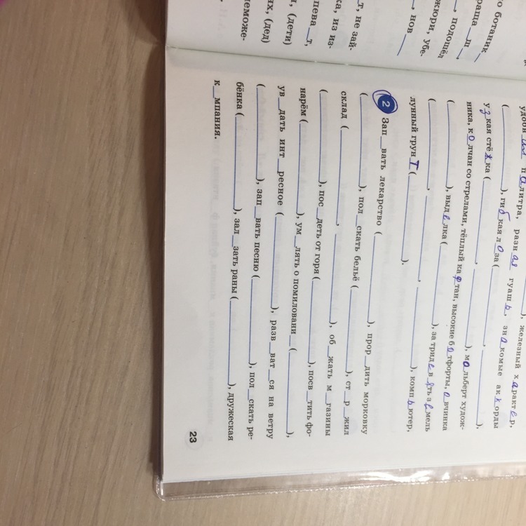 Запивать лекарство, прорядить морковку, полоскать бельё, сторожил склад, объезжать магазины, поседеть от горя, посветить фонарём, умолять о помиловании, увидать интересное, развеваться на ветру, запевать песню, поласкать ребёнка, зализать раны, дружная компания.