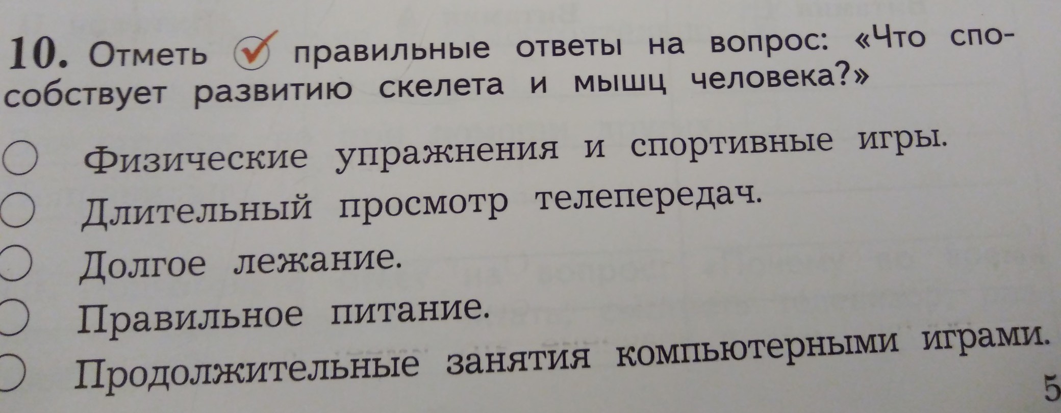 Отметь галочкой правильные ответы на вопрос : «Что способствует развитию скелета и мышц человека?»