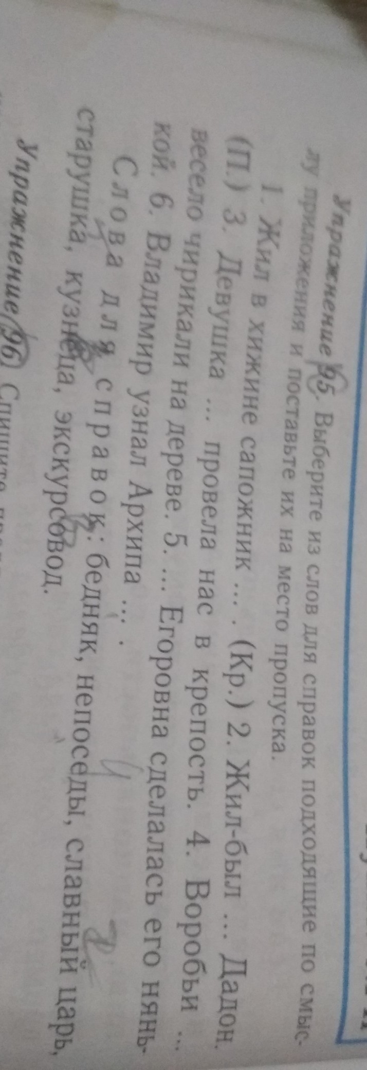 выберите из слов для справок подходящие по смыслу приложенияи поставьте их на место пропуска