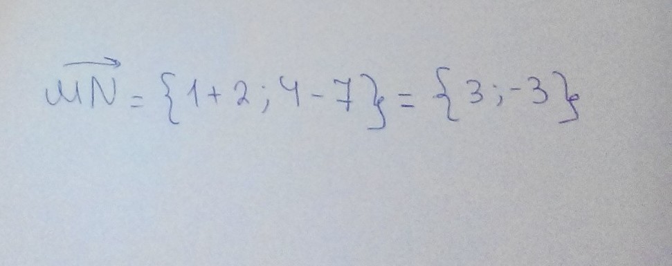 Найдите координаты вектора MN, зная координаты его начала и конца: М (-2; 7), N(1; 4)