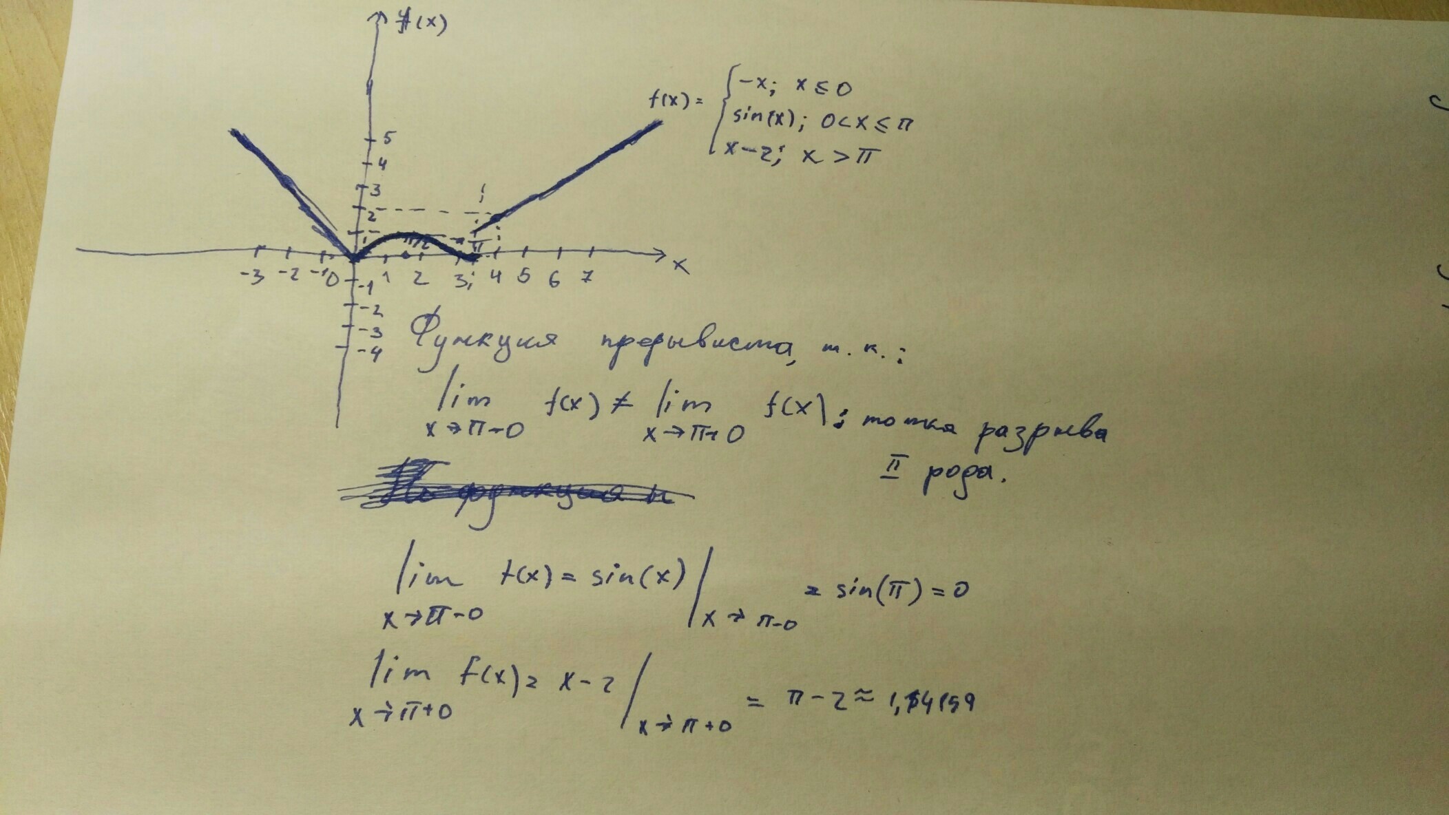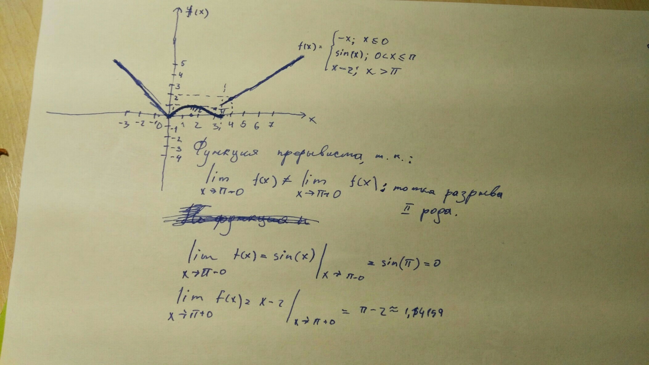 Точка разрыва будет в точке пи. Подробности и чертеж на фото.
