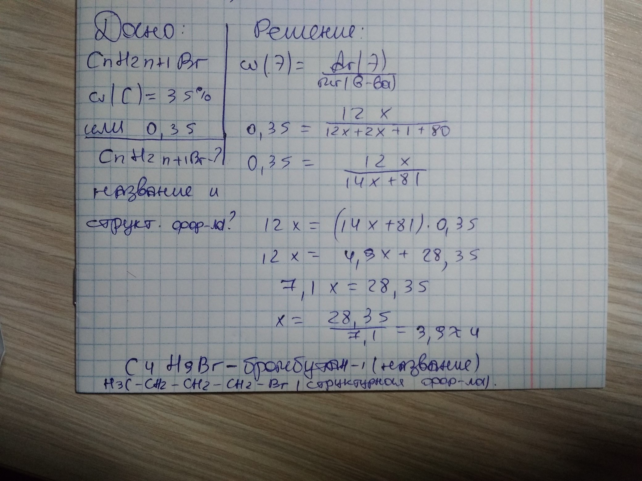 Третичный монобромалкан содержит 35% углерода по массе. Напишите его структурную формулу и дайте название. Решите задачу пожалуйста