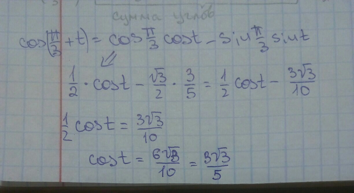 по формуле суммы углов косинуса