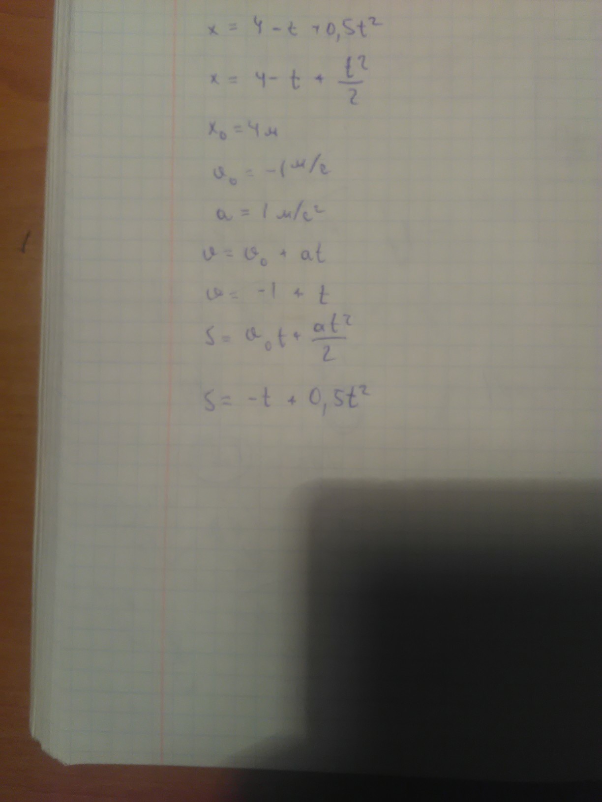 Движение материальной точки задано уравнением: x=0,5t²- t + 4.