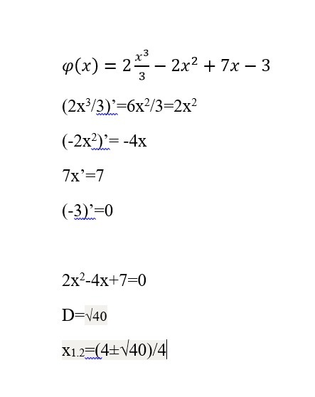Получившееся при решении производной уравнение не имеет вещественных корней, но имеет комплексные.