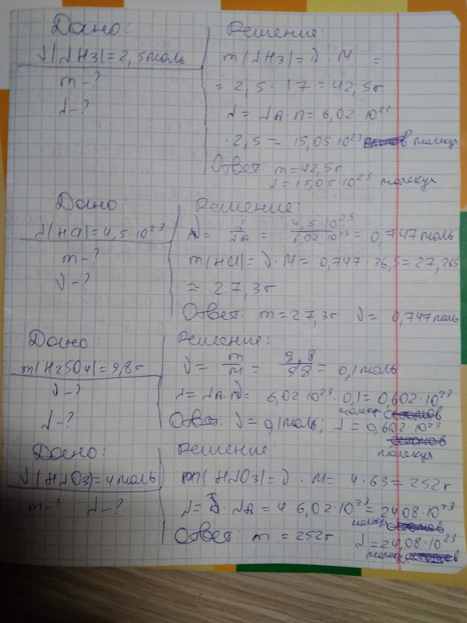 m(NH3)= 2.5моль× 17г/моль = 42.5г