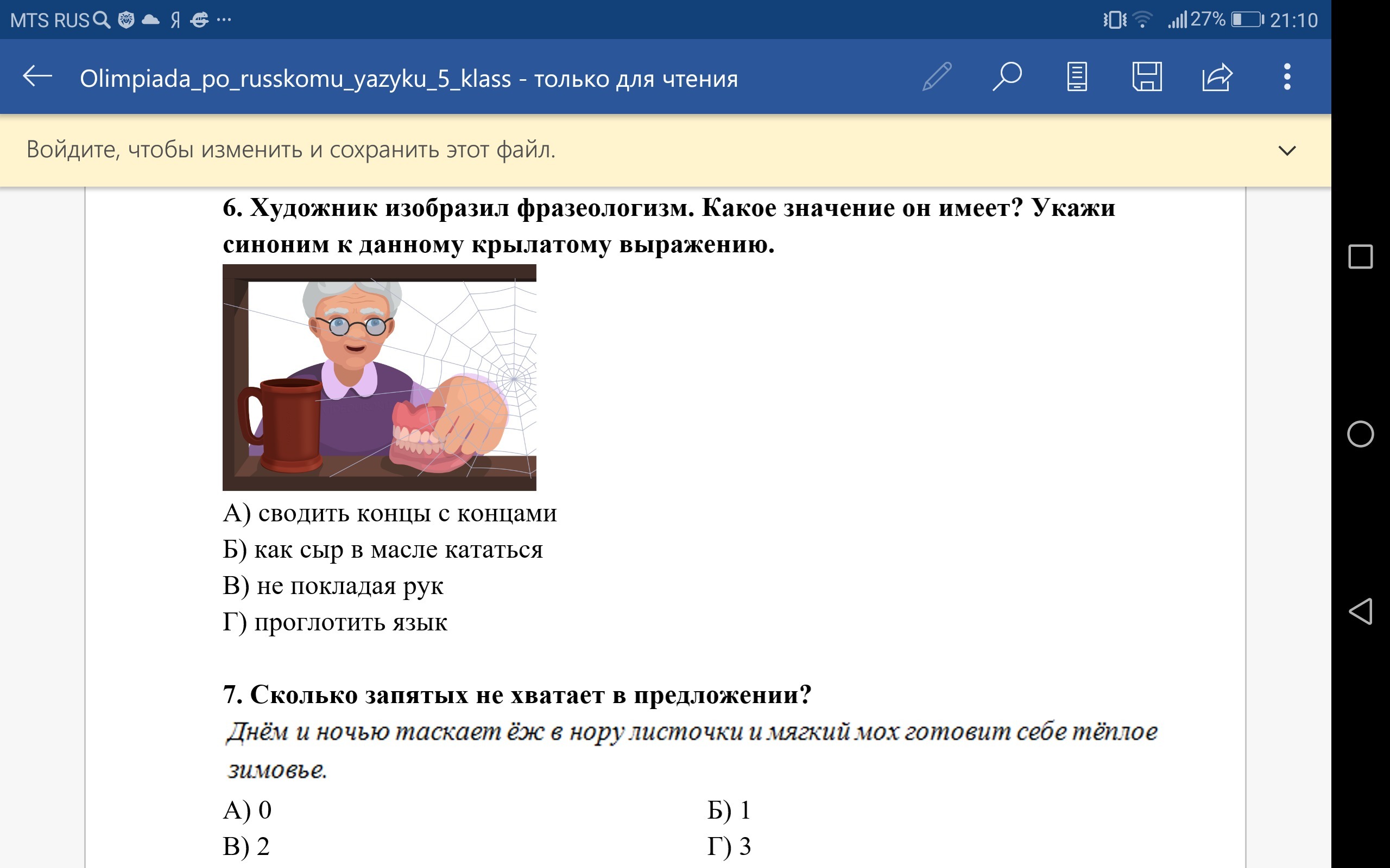 6.Проглотить язык 7. Вроде 1