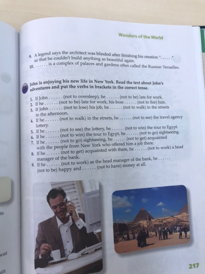 6 If he didn't win the tour to Egypt, he wouldn't go sightseeing.