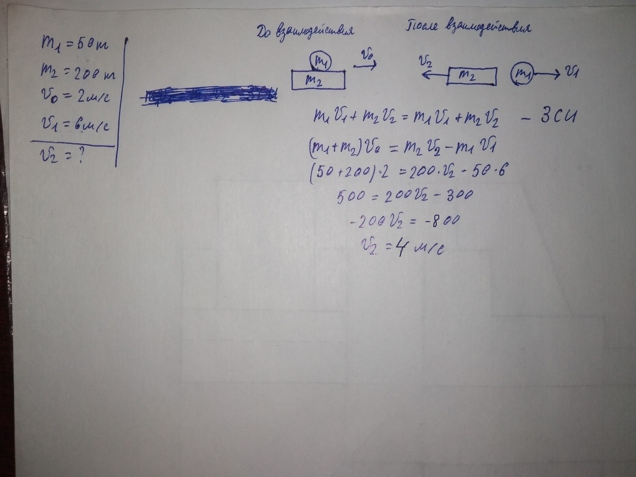 По закону сохранения импульса, импульс ситемы тел до взаимодействия равен импульсу системы тел после взаимодействия. Отсюда решение