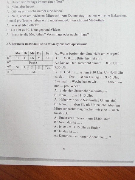 B.: Um 8.00 Uhr. ... Stundenplan.
