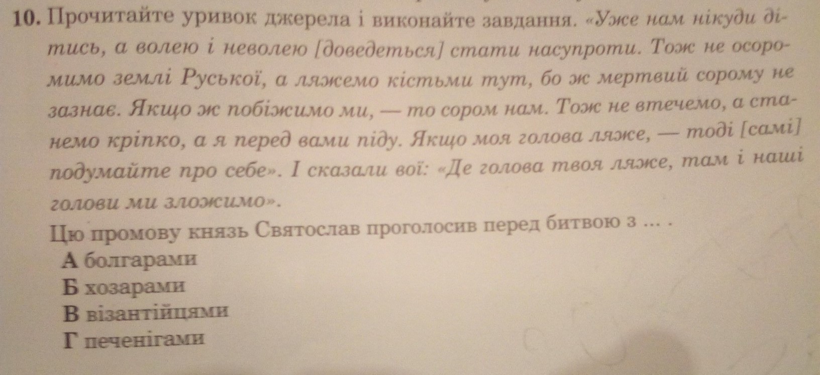Это Святослав сказал перед последней битвой в своей жизни, на днепровских порогах, с ПЕЧЕНЕГАМИ под предводительством князя Кури, который потом сделал из черепа Святослава чашу и пил из неё на пирах, в надежде получить частичку отваги покойного врага. А сдали его печенегам греки, точнее, византийский император Иоанн Цимисхий, который, строго говоря, был армянином.