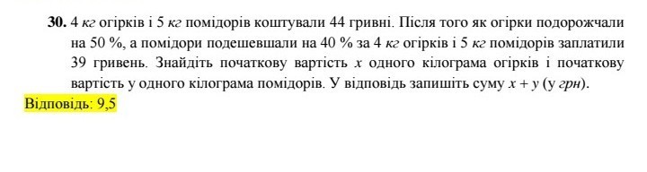 1. Примем исходную цену одного килограмма огурцов за , а исходную цену килограмма помидоров - за