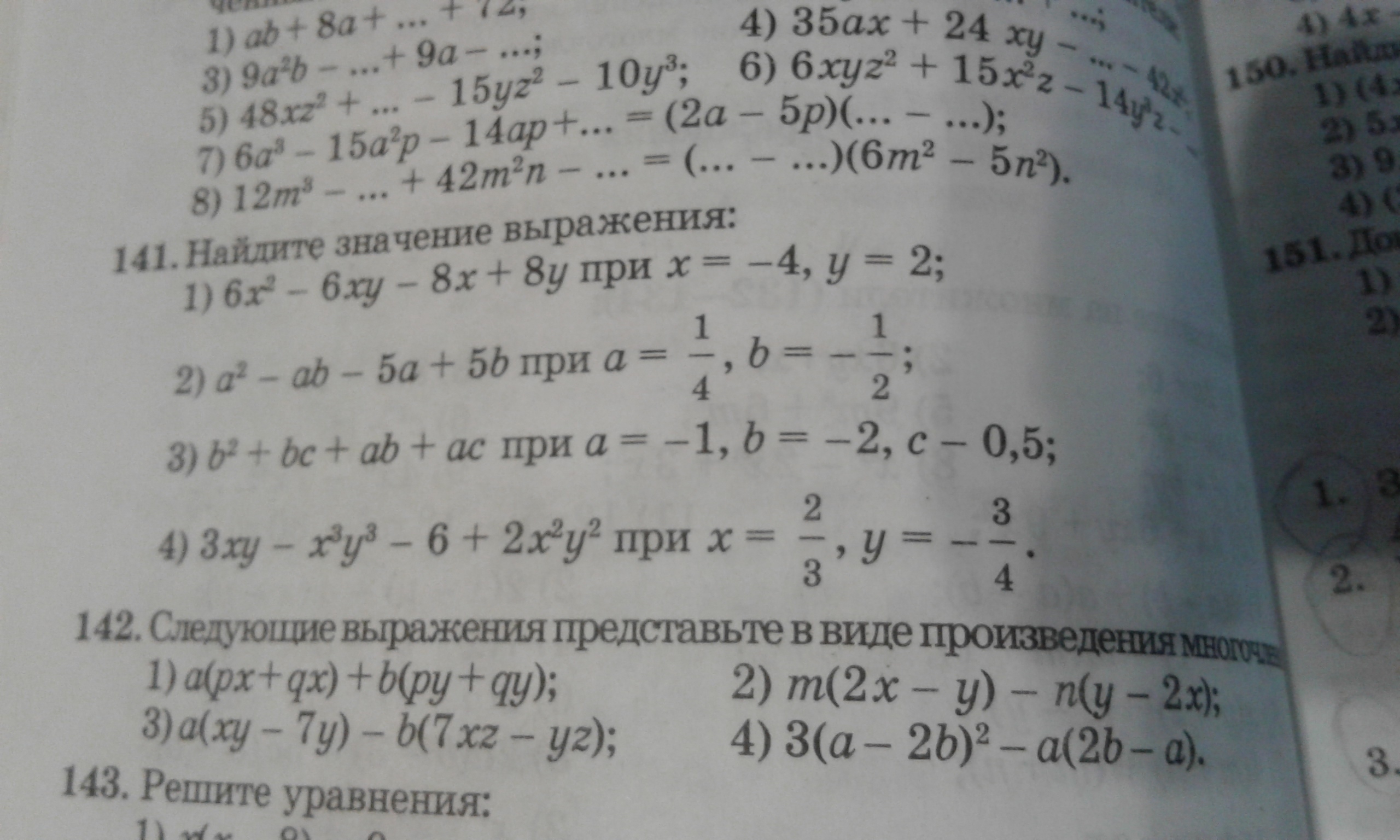 3) b²+bc+ab+ac = (b²+ab)+(bc+ac) = b(b+a)+c(b+a) = (b+c)(b+a) при a=-1, b=-2, c=-0,5 , тогда (-2-0,5)(-2-1) = -2,5*(-3) = 7,5