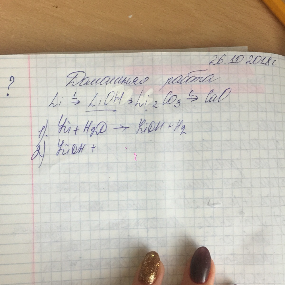 2Li + H22O = 2LiOH +H2