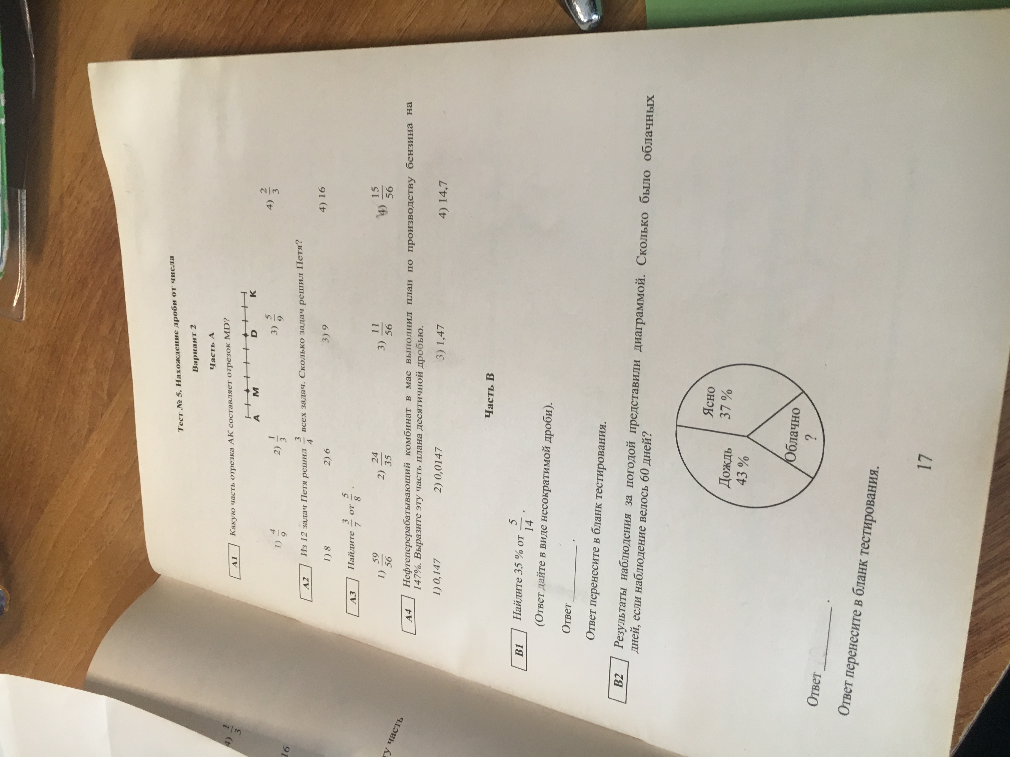 А3. Здесь просто нужно перемножить дроби: 5/8 * 3/7 = 15/56