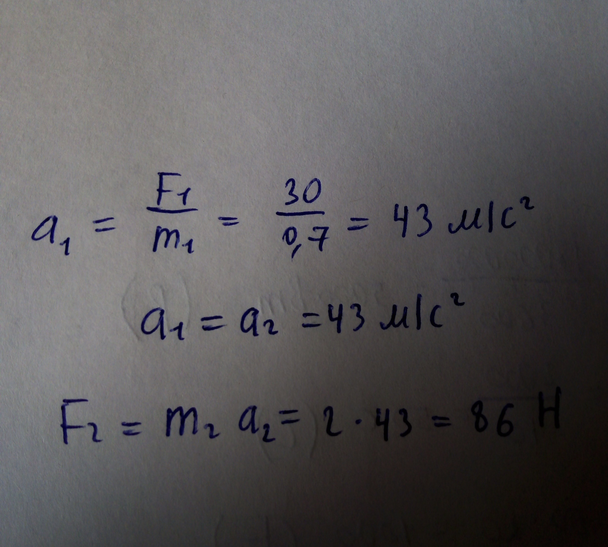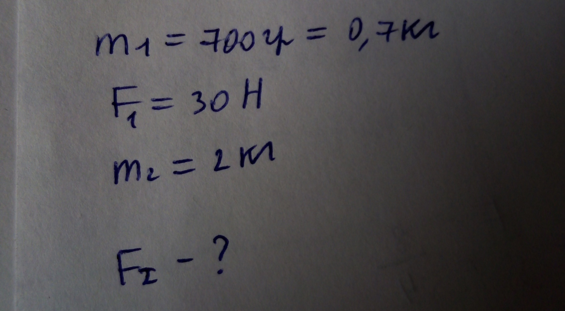 дано m1=0,7 кг F1=30 Н m2=2 кг F2- ?