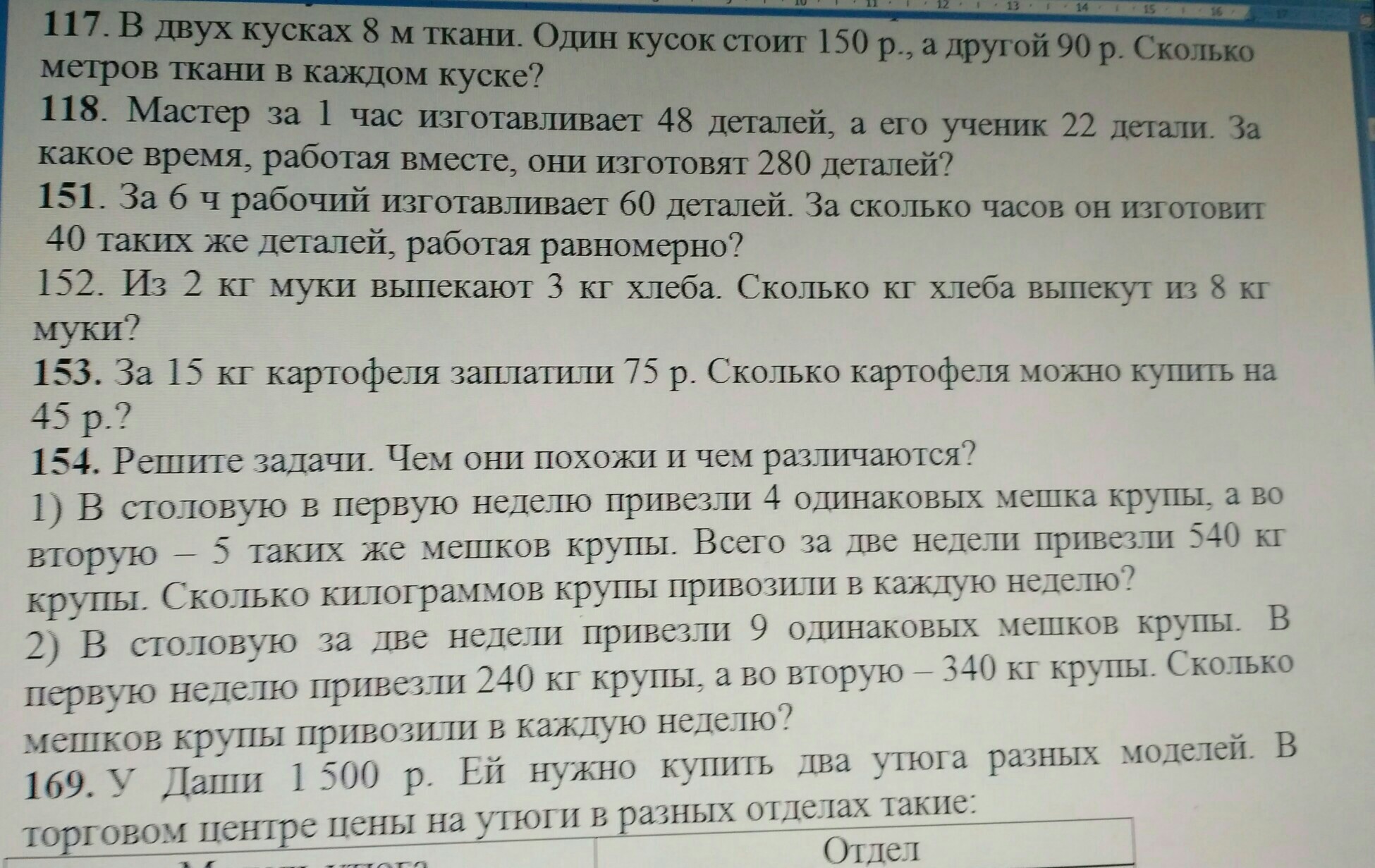 117. 1) 150+90=240 руб стоит 8 м ткани