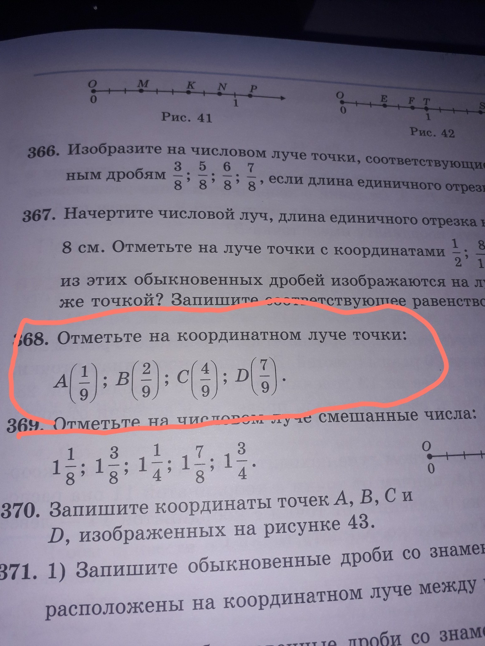 Вот твой луч.Для более удобного чертежа советую брать за единичный отрезок число ,которое делится на 9 без остатка