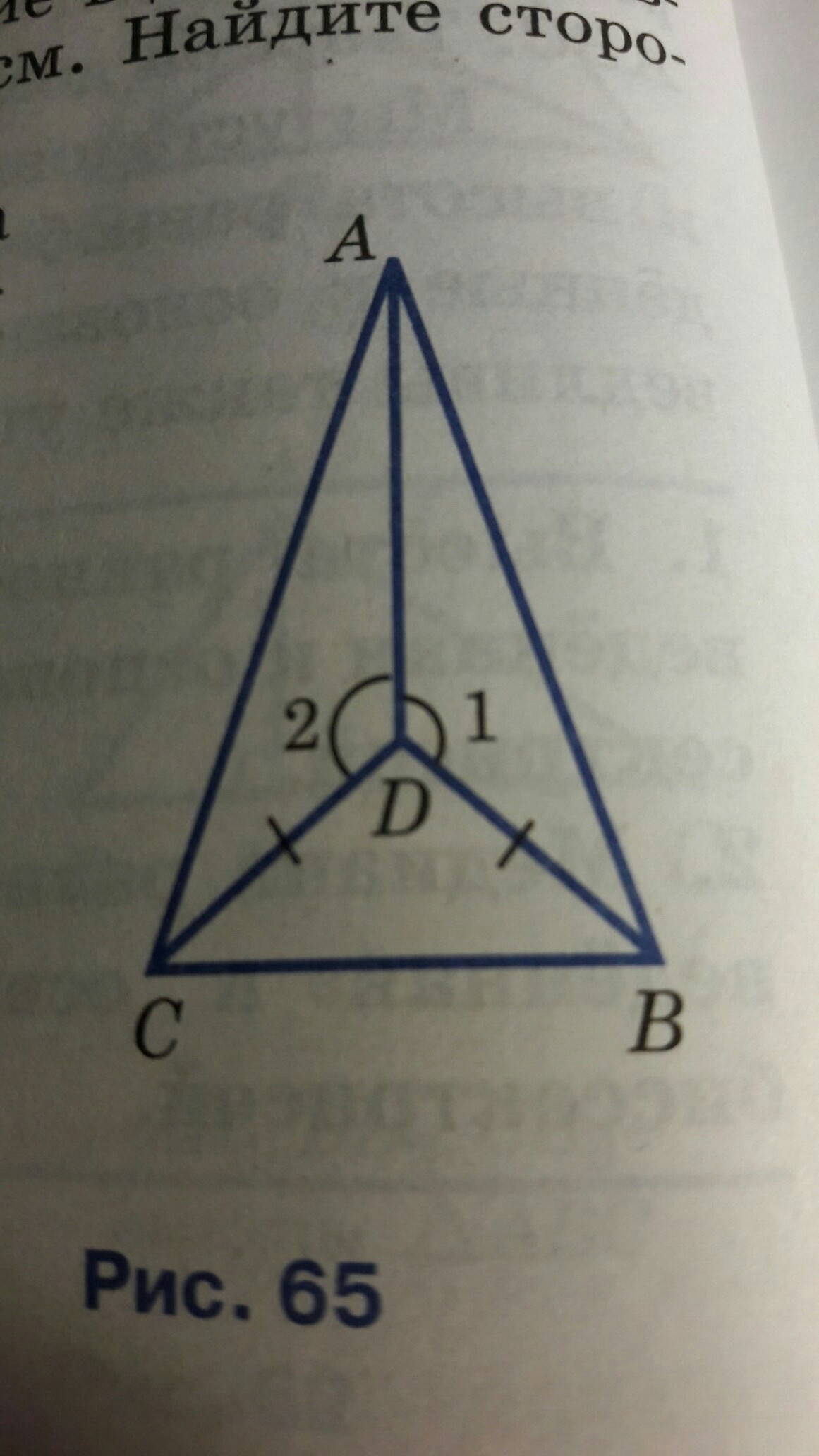 на рисунке 65 CD равно B D угол 1 равен углу 2 Докажите что треугольник ABC равнобедренный