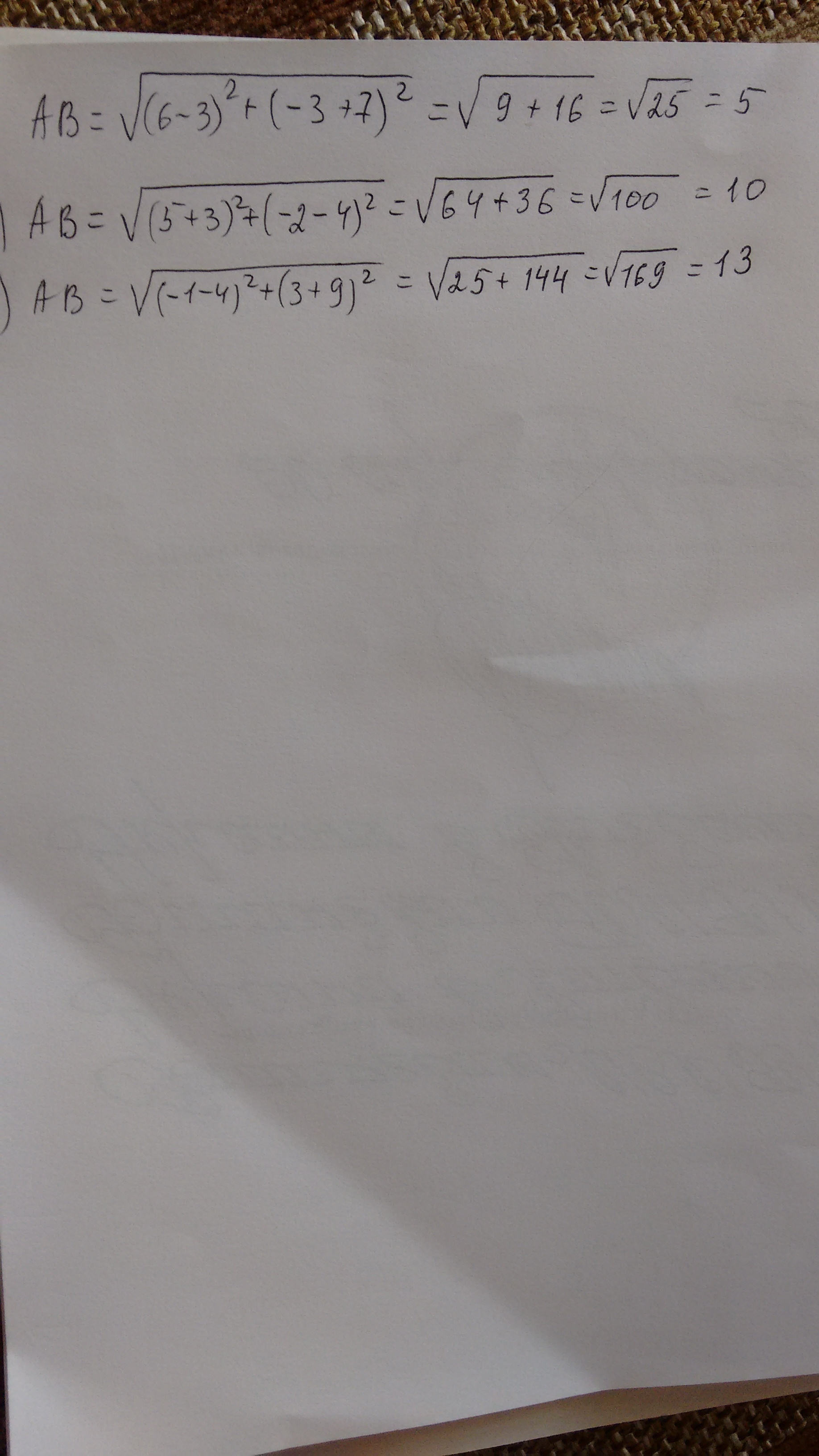 Найдите расстояние между точками А и В, если 1) А (3;-7) В(6;-3) 2) А (5;-2) В (-3;4) 3) А(-1;3) В(4;-9)