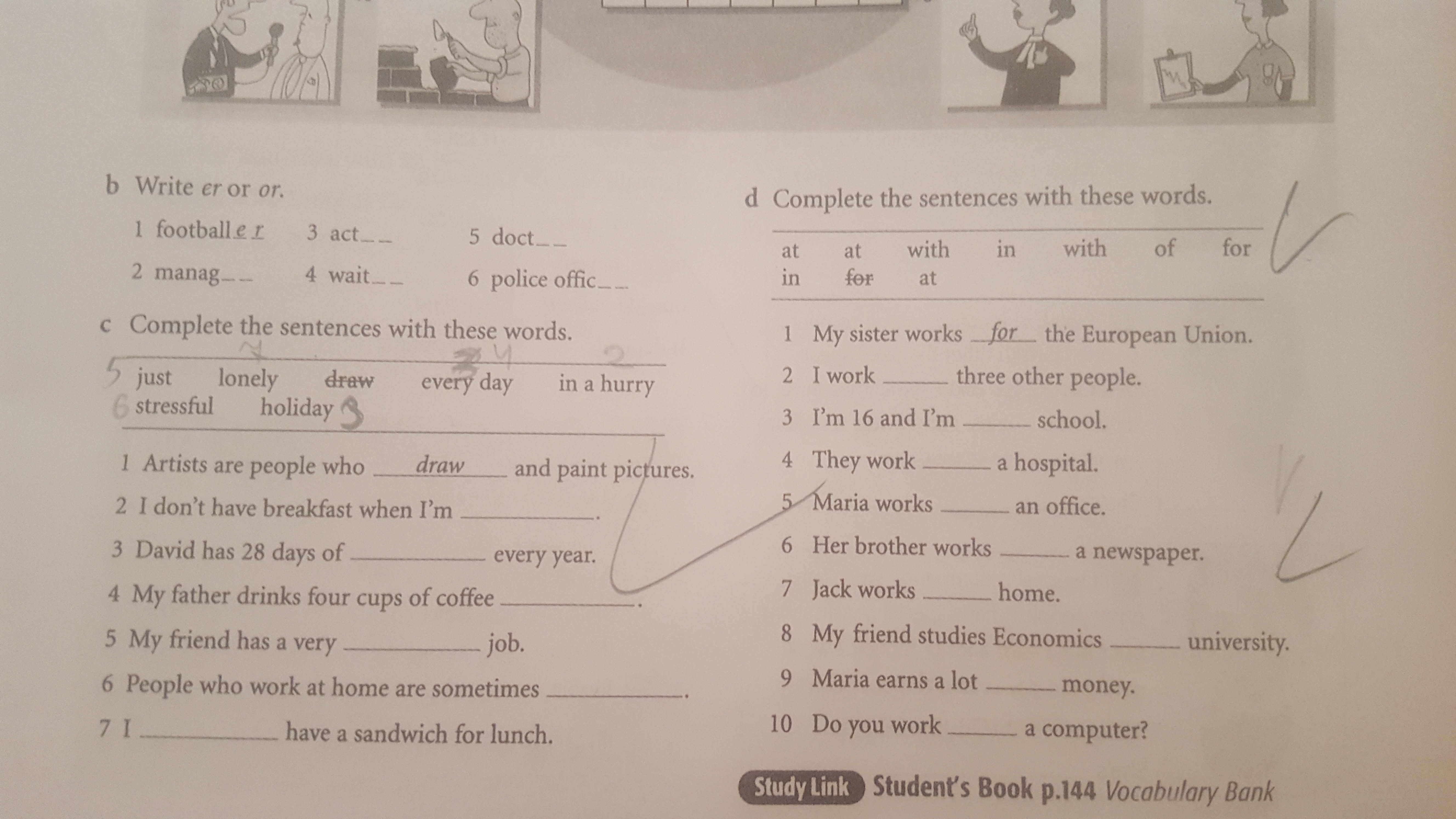 C. 1 draw 2 in a hurry 3 holidays 4 every day 5 stressful 6 lonely 7 just