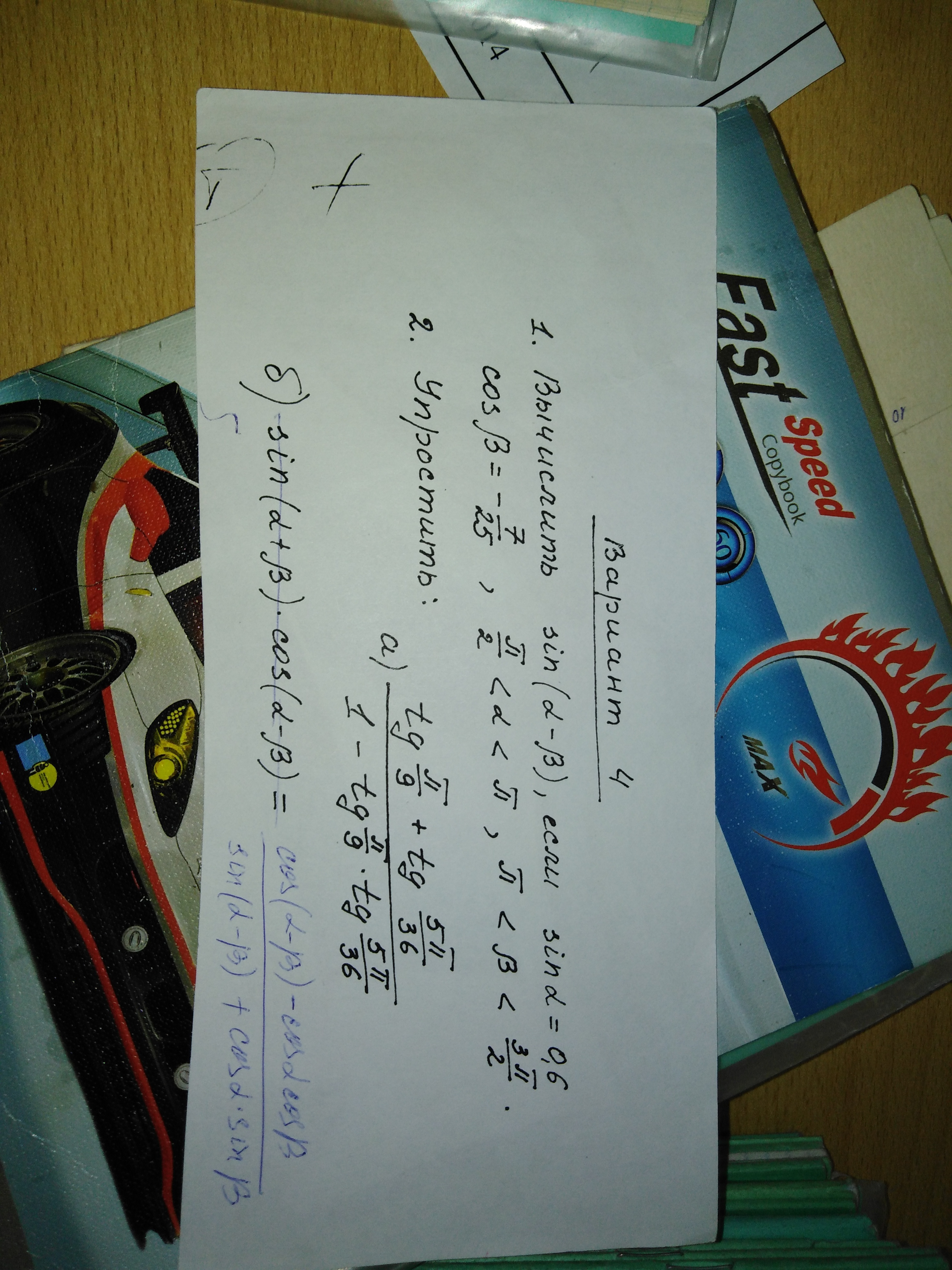 Sin(α - β) = 0,6*(-7/25) - (-0,8)*24/25= -42/250 + 192/250 = 150/250 =