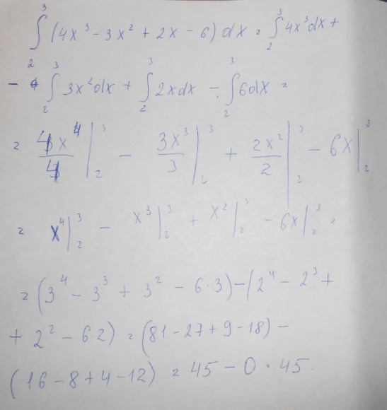 2. Сначала подставляем верхнюю границу, затем нижнюю