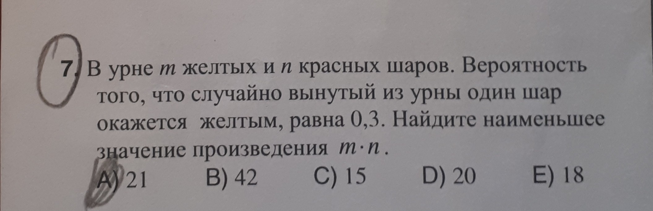 10-3 = 7 – красных шаров