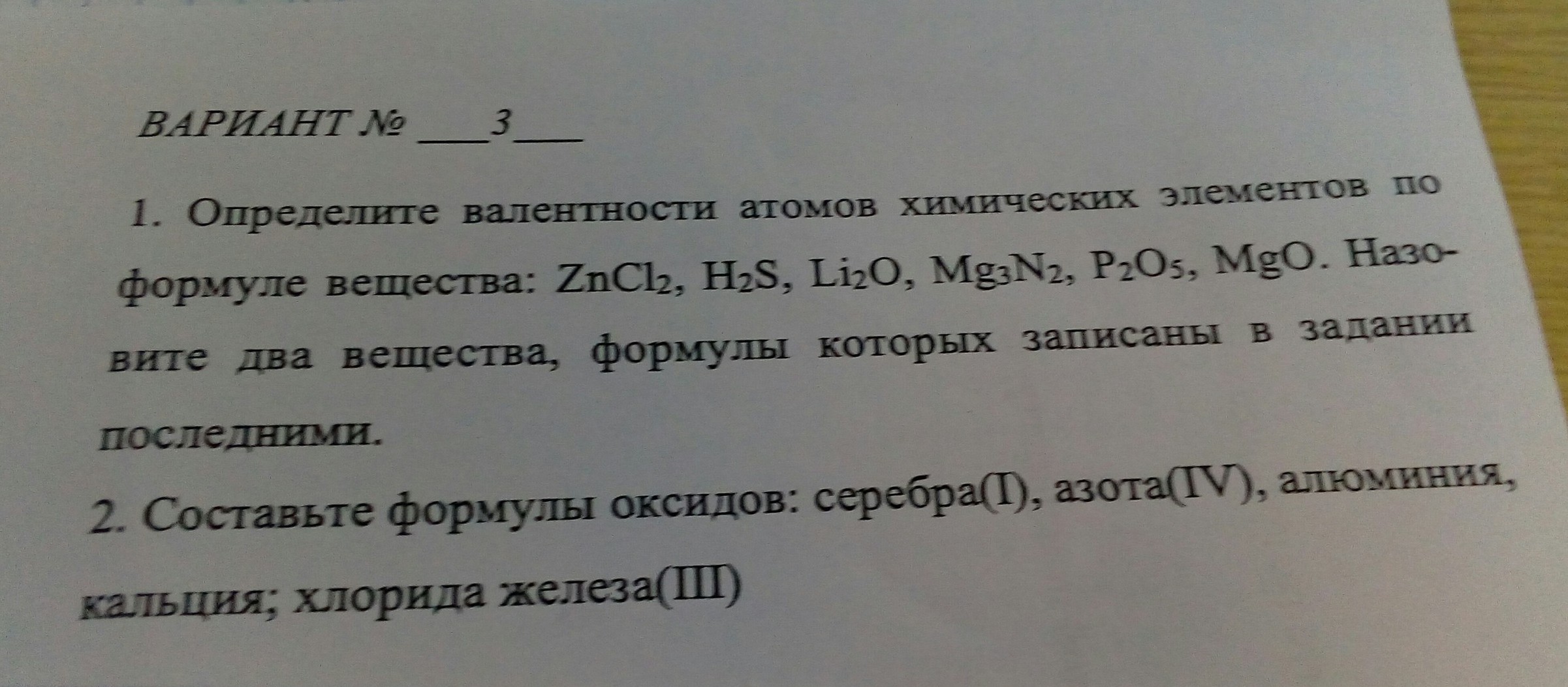 1. ZnCl2 (валентность хлора 1, цинка 2)